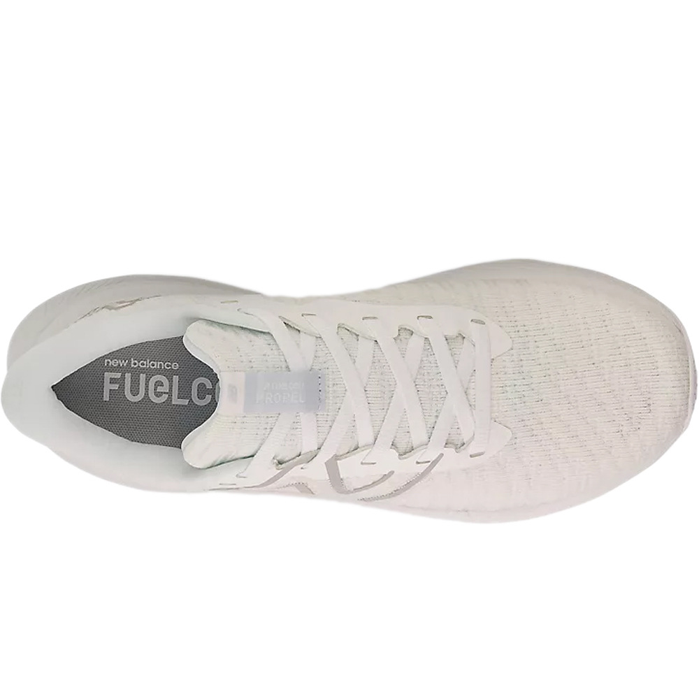 - Las zapatillas running New Balance FuelCell Propel v4 Blanco Calcio están confeccionadas en malla técnica/sintética que ofrece ajuste cómodo y transpirable, con un soporte ligero. La cubierta suave y sin costuras, aumenta el tacto de lujo del pie. Logotipo N llamativo para añadir más estilo y una estética deportiva.