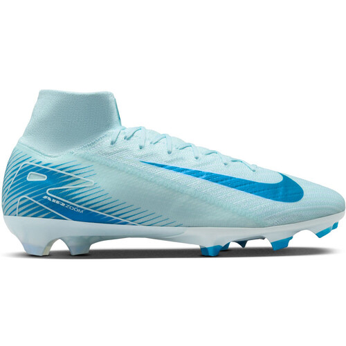 - Para jugadores amateurs o profesionales que entrenan y compiten. Nueva temporada y nuevo estreno de Nike con la colección Mad Ambition Pack y sus nuevas botas de fútbol Nike MERCURIAL ZOOM SUPERFLY 10 ELITE FG con tobillera Dynamic Fit Collar. Incorporan toda la tecnología de la marca para conseguir la Mercurial más rápida y reactiva creada hasta la fecha. Cuenta con textura adherente Gripknit y cubierta completa Flyknit de última generación que proporcionan máximo ajuste. La suela FG cuenta con una nueva placa y patrón de tracción en forma de ondas y tacos agresivos que, combinados con una unidad Zoom Air de mayor superficie y reactividad, generan toda la sensación de propulsión y velocidad que necesitas para superar las líneas defensivas. Revoluciona el juego y rompe los partidos con esta bota de rendimiento profesional.