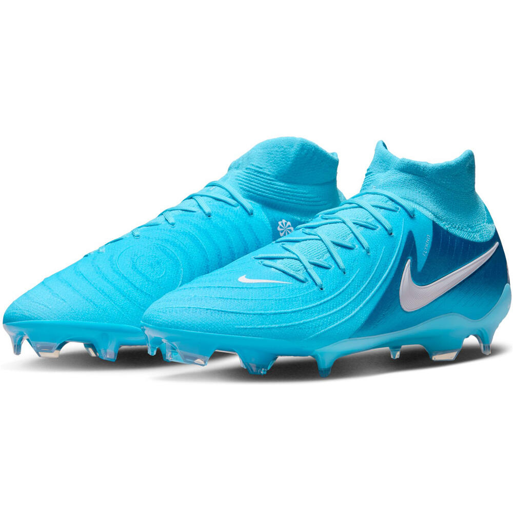 - Para jugadores de fútbol amateurs o profesionales que entrenan y compiten. Encuentra la calma cuando se desata la tormenta con las nuevas botas de fútbol Nike PHANTOM LUNA 2 PRO FG. Su diseño ofrece un toque sensible y el dribling perfecto que te ayudará a superar las líneas rivales. El empeine con el Gripknit de revestimiento adherente cubre la zona de impacto y permite mayor control y precisión de balón. El perfil más alto de tejido Flyknit y bordes asimétricos mejora la comodidad y garantiza un ajuste ceñido al tobillo, con más equilibrio. La suela de tracción Nike Cyclone 360 te hará ganar en tracción y agilidad en regates y giros de balón. Pon en juego toda tu técnica con estas botas de última generación y alto rendimiento, para jugadores de clase.