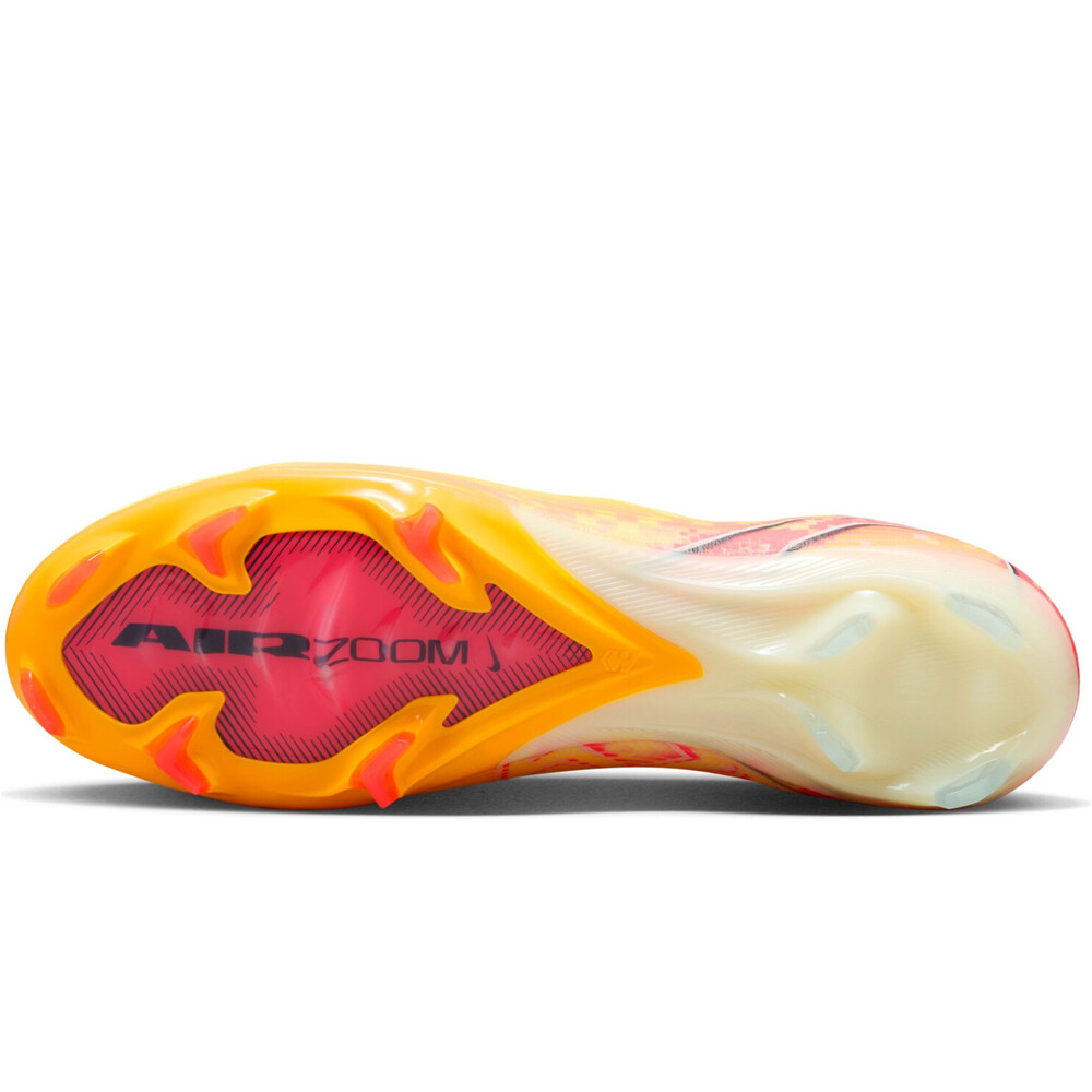 - Suela: SG - Césped natural duro y hierba artificial de última generación. Suela con placa mixta que combina tacos cónicos laterales y tacos laminados que mejoran la tracción y el agarre. La estructura TPU con diseño de sistema modular aumenta la ligereza y mejora la agilidad y la explosividad en cada acción de partido. Revolucionaria unidad Zoom Air de 3/4.