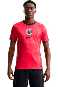 - La camiseta fútbol oficial segunda equipación Nike Inglaterra Stadium Away Mundial 2026, es la versión réplica oficial para que los aficionados luzcan los colores de la selección inglesa con el mismo estilo genuino que visten los jugadores en la Copa Mundial de la FIFA 26™ de México, Canadá y Estados Unidos. La camiseta para los partidos de visitante de Inglaterra presenta un diseño en color rojo intenso, combinado con los detalles azules y blancos, celebrando la riqueza cultural y a las personas que dan forma a un país. El fondo con patrón tejido y gráficos texturizados, representa un mosaico de elementos cargados de la historia y modernidad futbolística de este equipo. Los paneles laterales, las mangas de puño o los escudos bordados en el pecho, aportan los complementos de tradición y de carácter que lucen las Three Lions en cada estadio. Como camiseta Stadium, está confeccionada con tecnología Nike Dri FIT, tejido ligero que evacua el sudor y acelera la evaporación para mantener la piel seca durante entrenamientos, partidos y uso casual. Su ajuste es más relajado que la versión Match, lo que la hace ideal para los hinchas que buscan una prenda versátil, cómoda y con el estilo auténtico del Mundial 2026.