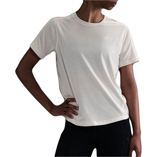 - Con un estilo minimalista y el logotipo Nike en el pecho, la camiseta Nike Trail de manga corta para mujer combina rendimiento y estética para acompañarte en cada aventura outdoor.