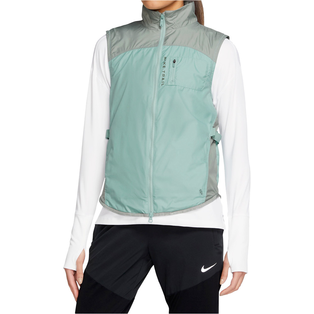 - Su cuello alto y cremallera de cuerpo entero te brindan cobertura total, mientras que el borde para el cuello y los detalles reflectantes de este chaleco Nike TRAIL REPEL aseguran visibilidad y seguridad en tus aventuras.