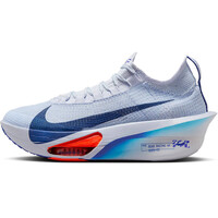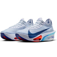 - La parte superior de la zapatilla running Nike AIR ZOOM ALPHAFLY NEXT% 3 Gris Azul está confeccionada con hilo AtomKnit supertranspirable, flexible y ligero. Su ajuste ceñido de guante mejora el confort y las sensaciones interiores del pie durante toda la prueba. Lengüeta anatómica integrada de tejido Knit, de suave tacto y adaptación segura que reduce las molestias y la irritación. Cordones ranurados para ofrecer un sistema de lazada suave y seguro. Almohadillas específicas en el talón de sujeción ligera. Presilla trasera de puesta fácil.