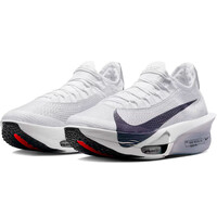 - Zapatilla de máximo rendimiento para correr y competir por asfalto más de 4 veces por semana, no menos de 60 minutos. Diseñadas para las mejores corredoras del mundo, las zapatillas de running mujer Nike AIR ZOOM ALPHAFLY NEXT% 3 están diseñadas para ofrecer la máxima propulsión y velocidad durante los maratones. Su estructura pronunciada te anima a aplastar tus marcas sin dudarlo. La parte superior está confeccionada con tejido de hilo AtomKnit extremadamente ligero y transpirable. La nueva plataforma integra las tecnologías más avanzadas e innovadoras; 2 almohadillas Zoom Air reactivas en el antepié, placa de propulsión Flyplate de fibra de carbono y espuma ZoomX en toda la entresuela para mantenerte fresca y cómoda desde el primer kilómetro. La suela exterior de goma adherente proporciona una tracción y durabilidad increíbles, manteniendo los espacios huecos de flexión para una mejor elasticidad y dinámica de carrera. Una zapatilla que te hace soñar con batir récords en distancias largas y maratón. Para corredoras de peso ligero o medio, el ritmo es inferior a 4 min/km. y buena técnica de carrera. Apta para competiciones oficiales (IAAF).