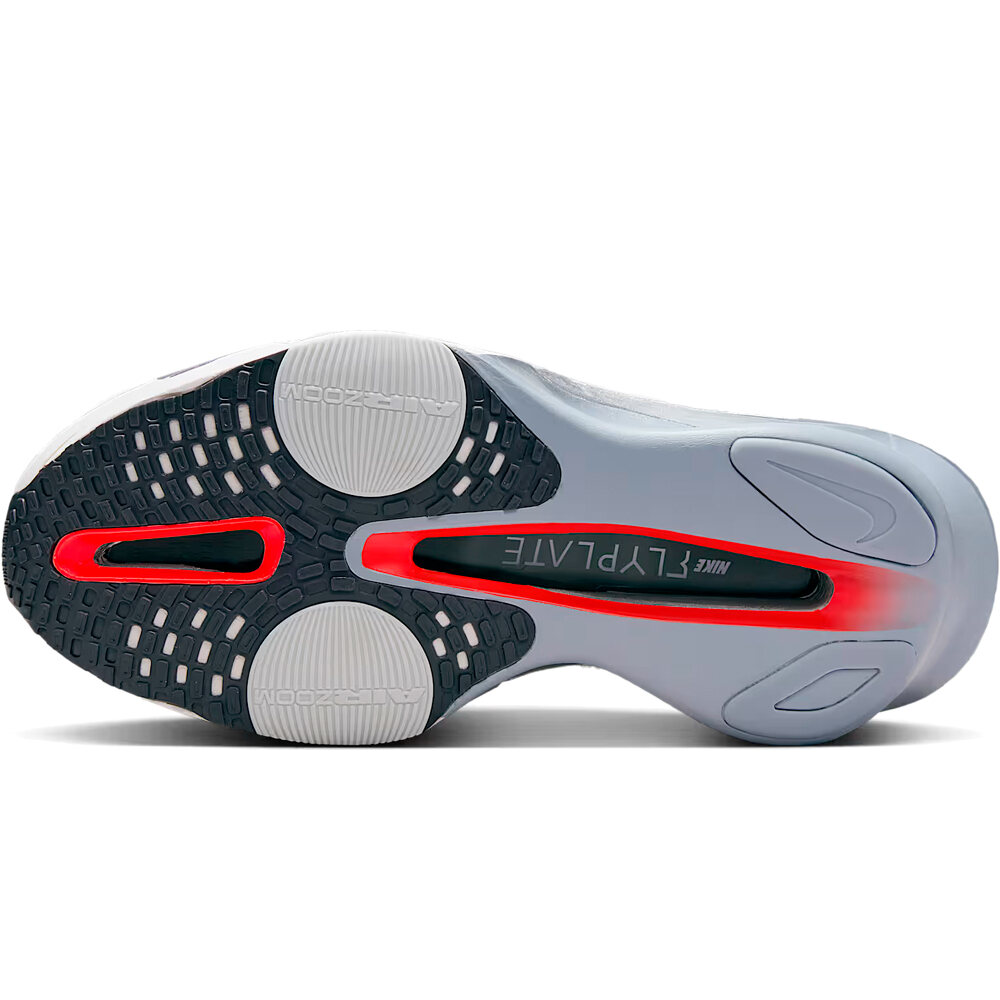 - La suela exterior de estas Nike AIR ZOOM ALPHAFLY NEXT% 3 lleva goma de excelente tracción en las zonas de ataque que garantiza agarre y seguridad. El diseño depurado se completa con surcos de flexión que mejoran la dinámica y elasticidad de la zancada.