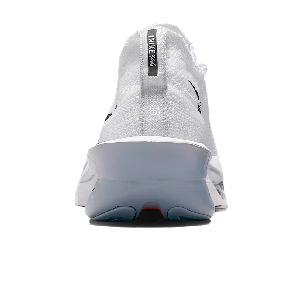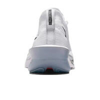 - El corte superior de la zapatilla running Nike AIR ZOOM ALPHAFLY NEXT% 3 Blanco Marino Gris está fabricada con tejido de hilo AtomKnit supertranspirable, flexible y tremendamente ligero. Su ajuste ceñido de guante mejora el confort y las sensaciones interiores del pie durante toda la competición. Lengüeta anatómica integrada de tejido Knit, de suave tacto y adaptación segura que reduce las molestias y la irritación. Cordones ranurados para ofrecer un sistema de lazada suave y seguro. Almohadillas específicas en el talón de sujeción ligera. Presilla trasera de puesta fácil.