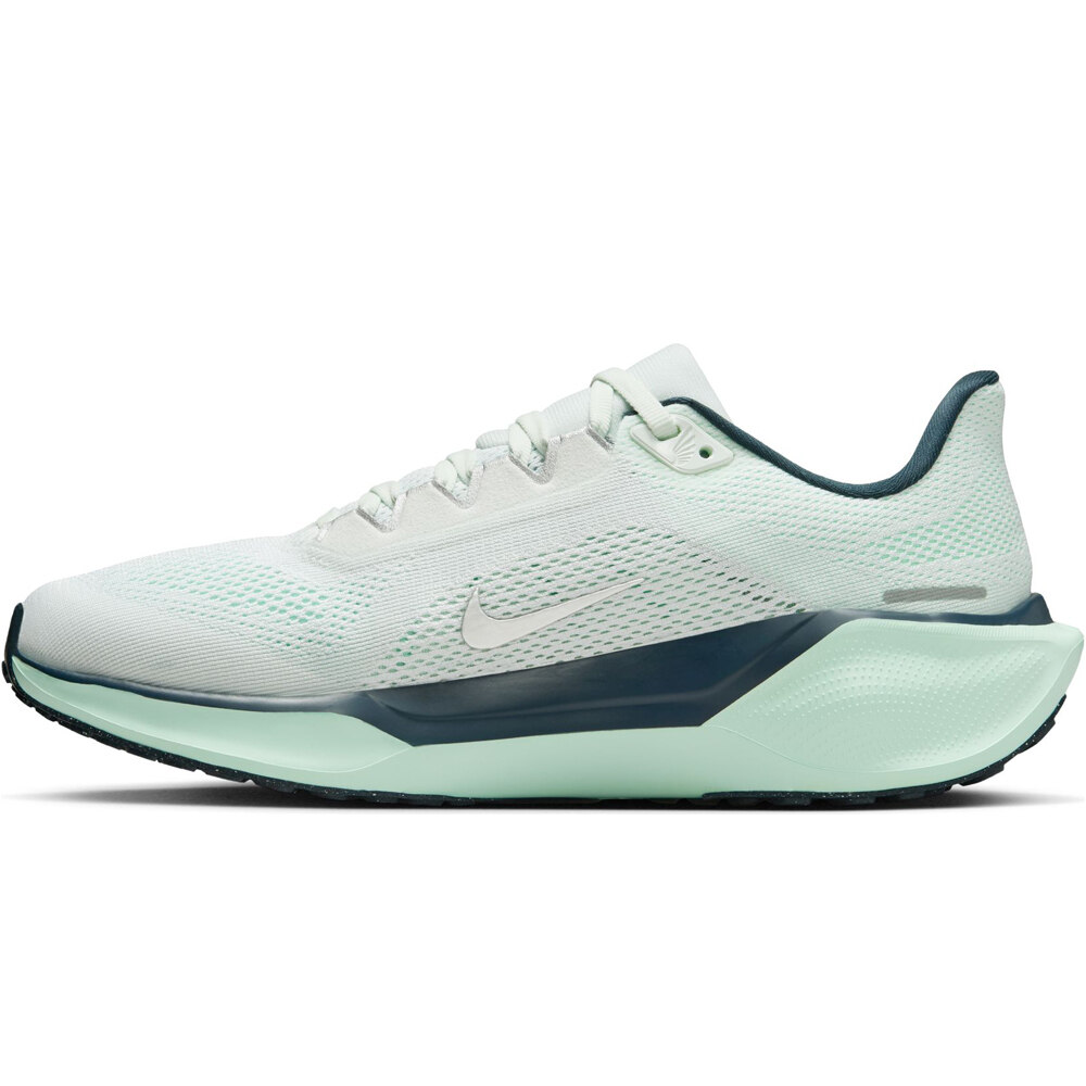 - La parte superior de la zapatilla running Nike AIR ZOOM PEGASUS 41 Verde Aqua Navy está fabricado en malla microperforada de tejido Engineered Mesh duradero y flexible, de ajuste confortable y reducido peso. El nuevo diseño es más ventilado y el interior brinda mayor suavidad y fijación del pie durante la carrera. Collar del talón biselado. Lengüeta suave y cómoda. Plantilla de alta transpiración y absorción.