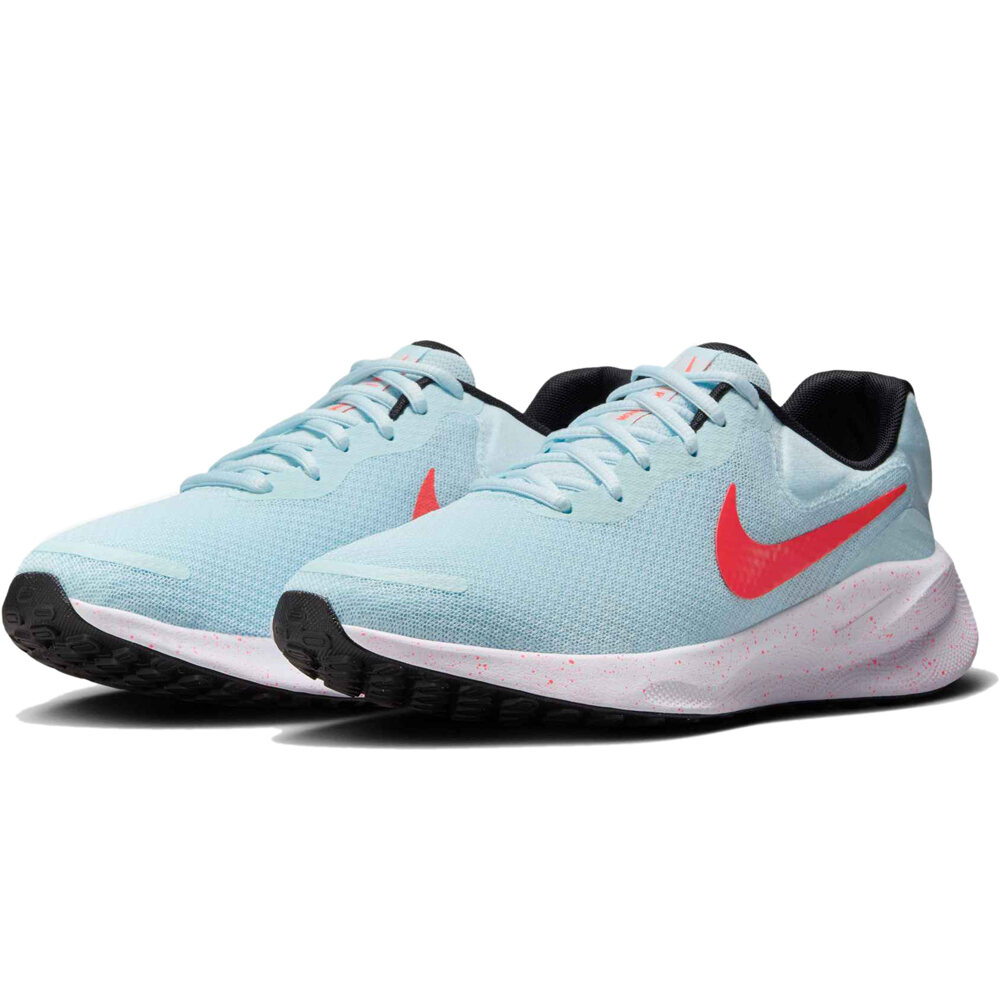 - Las zapatillas running Nike Revolution 7 Azul Claro Rojo llevan una parte superior de malla ligera monocapa para una transpirabilidad y comodidad óptimas. Acolchado en el talón que logra un tacto más suave y aportan sujección al tendón de Aquiles. Confeccionadas con, al menos, un 20 % de materiales reciclados.