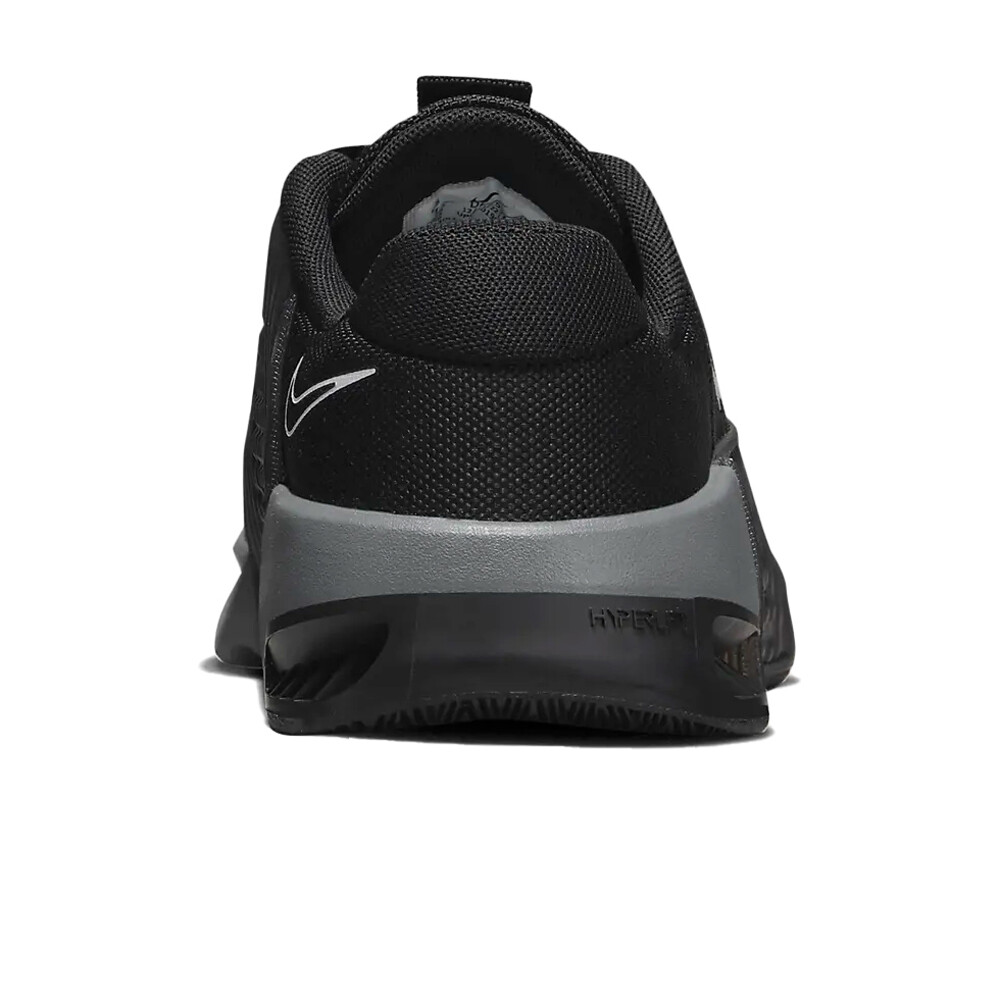 - Las zapatillas fitness Nike Metcon 9 Negro se presentan con una parte superior con estampado de malla en capas duradera y resistente sin sacrificar la transpirabilidad. Empeine con refuerzo y estampado texturizado que añade durabilidad y textura. El nuevo revestimiento de goma en los laterales (Rope Wrap) permite un mejor agarre y tracción para todo, desde escalar cuerdas hasta trabajos de velocidad. Pestaña en la lengüeta para bloquear los cordones durante cualquier sesión de entrenamiento.