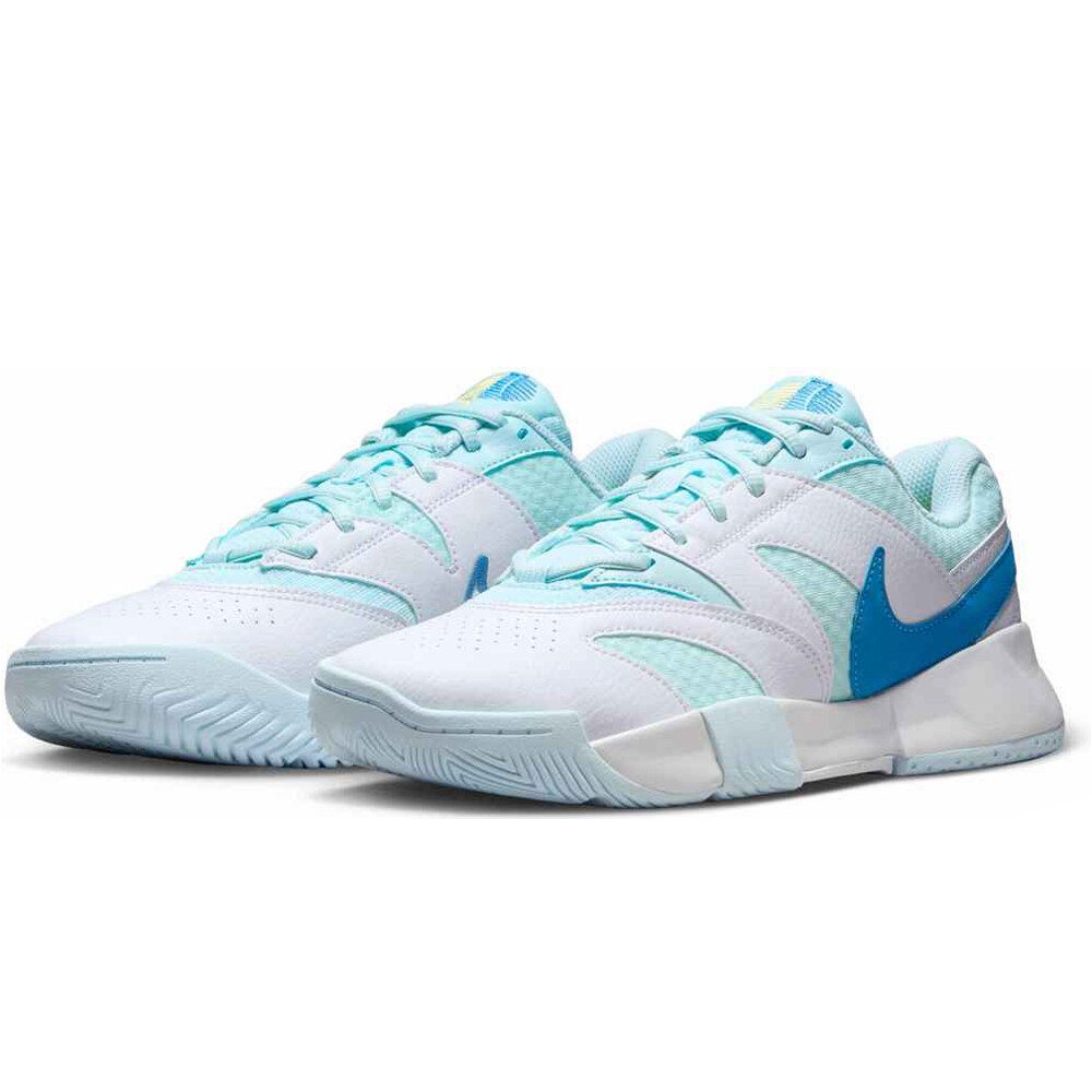 - Pensadas para mujeres que están dando sus primeros pasos en deportes de raqueta como el tenis o el pádel, y que juegan en superficies mixtas. Ya sea en el saque o en una volea rápida, las zapatillas de tenis para mujer Nike Court Lite 4 te acompañan en cada movimiento sin comprometer tu bolsillo. Diseñadas para ofrecer resistencia y libertad de movimiento durante intercambios prolongados, cuentan con una base amplia y una mediasuela con amortiguación reactiva que favorece el control en desplazamientos laterales y apoyos exigentes. La suela exterior, con diseño de espiga multidireccional, proporciona tracción segura en pistas rápidas. Perfectas para deportistas ocasionales o principiantes que buscan un calzado funcional, de estética discreta y elegante, y con las prestaciones necesarias para entrenar y disputar sus primeros partidos con confianza.