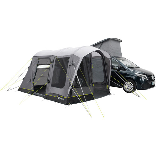- La tienda de campaña inflable Outwell Wolfburg 380 Air es perfecta para caravanas y autocaravanas. Ofrece un espacio amplio y bien ventilado, perfecta para familias y grupos que buscan comodidad y privacidad durante sus aventuras al aire libre. Esta tienda se puede montar rápidamente y se puede dejar de pie de manera independiente cuando te alejas con tu vehículo.