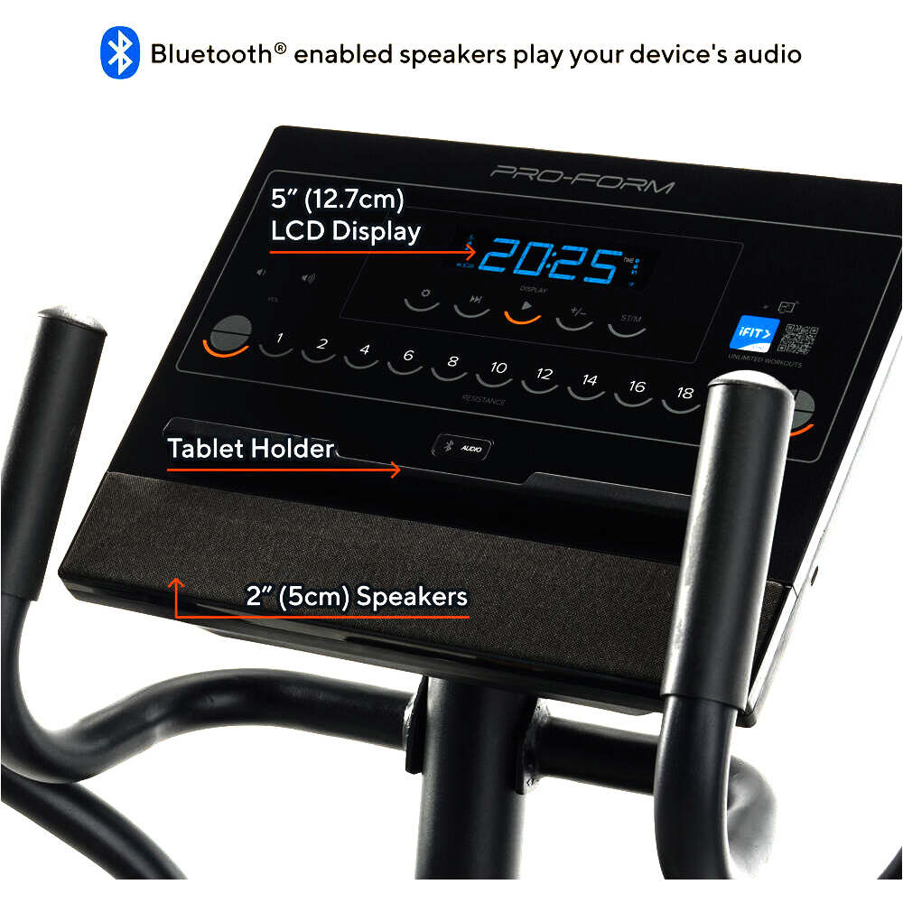 - La elíptica Proform Sport, mediante una suscripción iFIT Train viene con tecnología que hace que el fitness sea más efectivo y práctico. iFIT monitoriza tu rendimiento y ajusta automáticamente los 20 niveles de resistencia según tus necesidades, para que cada entrenamiento sea personalizado. iFIT es la biblioteca de entrenamiento al aire libre más grande del mundo, con más de 10,000 entrenamientos impartidos por atletas y entrenadores profesionales.