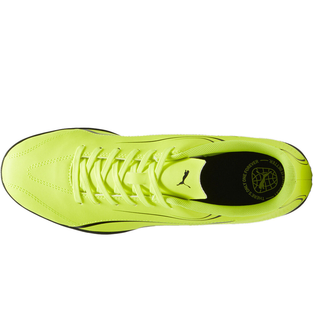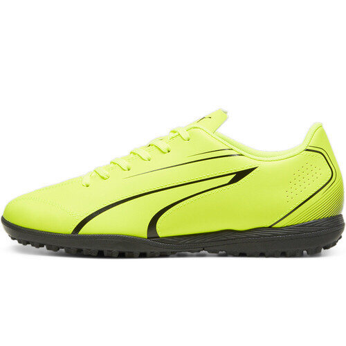 - Las botas de fútbol Puma VITORIA TT Amarillo Negro están hechas con una piel sintética, ligera y duradera, de diseño clásico. Lengüeta fina de confección estándar. Contienen al menos un 20% de materiales reciclados.