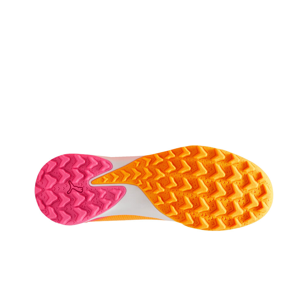 - La suela exterior de esta bota fútbol Puma ULTRA MATCH LL TT + Mid JR realizada en goma con multitacos triangulares que transfieren su energía directamente al terreno de juego. Tracción excelente y toda la velocidad para campos de césped artificial cortos o moqueta.