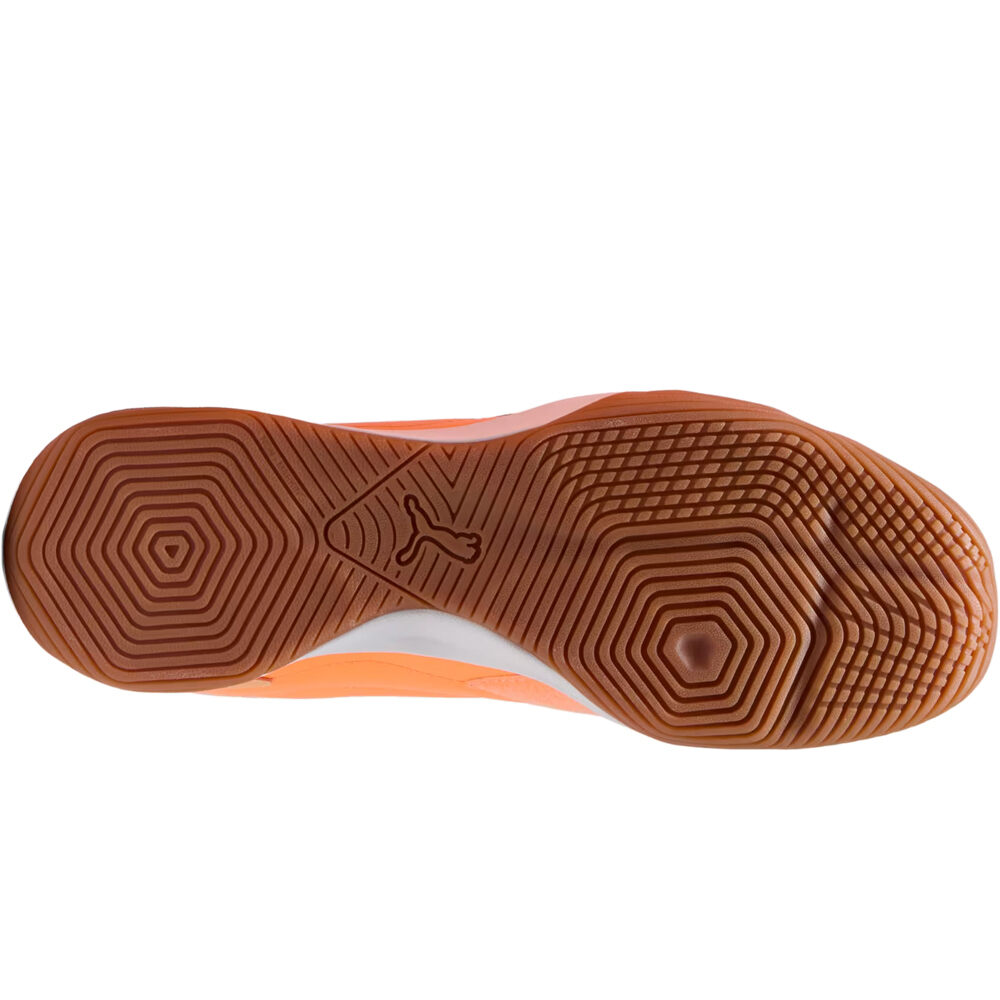 - Las zapatillas fútbol sala Puma Pressing IV Naranja Verde se ha confeccionado en piel sintética resistente y empeine reforzado que incorpora una puntera de goma con mayor protección para los golpeos.