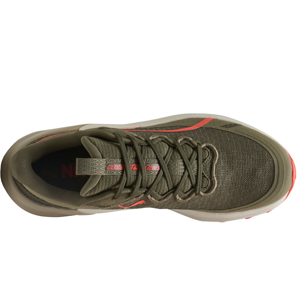 - El upper de las zapatillas trail running Puma Electrify NITRO™ 4 TR Verde Naranja está confeccionado en malla técnica transpirable con ajuste cómodo y firme ligera. Incorpora refuerzos termosellados de la puntera hasta el talón asegurando protección y mayor durabilidad. Lengüeta con acolchado ligero y tirador de ajuste. Fabricado con al menos un 30 % de materiales reciclados.