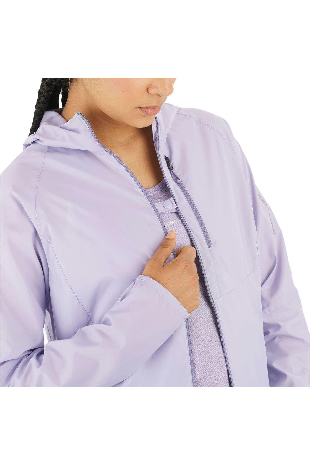 - La chaqueta Trail Running para mujer Salomon BONATTI CROSS WIND es la compañera perfecta cuando el viento se vuelve desafiante. Su diseño ultraligero y ceñido te envuelve con una barrera transpirable que protege sin limitar el movimiento. Gracias a su tratamiento hidrófugo y tejido cortavientos, esta chaqueta está lista para entrenamientos intensos, manteniéndote seca y cómoda mientras superas tus límites.