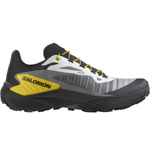 - Las zapatillas trail running Salomon GENESIS Negro Azul están realizadas en tejido Matryx® ligero y resistente, gracias a los hilos de Kevlar®. Cuentan con un diseño cómodo y duradero, con una pala inconfundible que se ajusta de forma óptima. Los contrafuertes exteriores Active Chassis™ ayudan a mantener la estabilidad y soporte del pie. El sistema Quicklace™ de atado rápido con bolsillo para los cordones. Refuerzo de protección en la puntera.