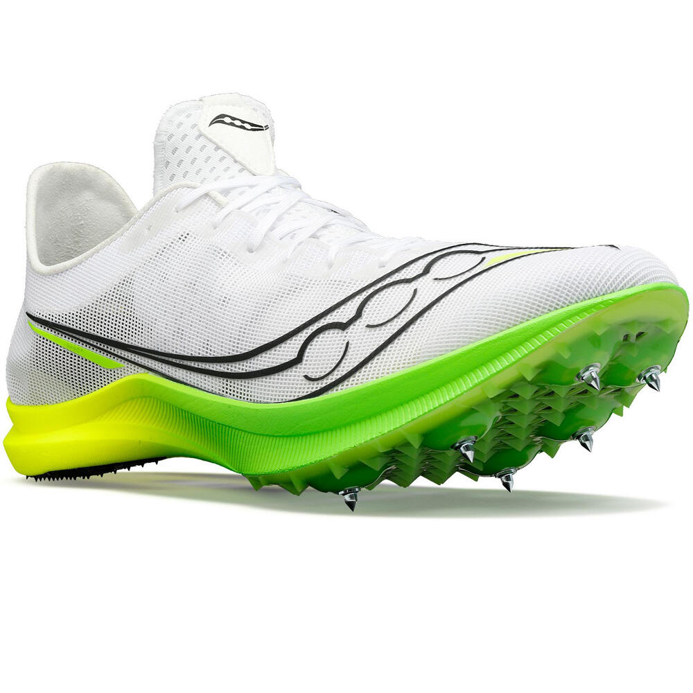 - La zapatilla Saucony ENDORPHIN CHEETAH cuenta con un chasis de Pebax que ofrece tracción explosiva y resistencia en la pista, con micro-tacos de bajo perfil que se agarran al tartán como ventosas.