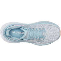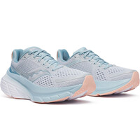 - La parte superior de la zapatilla de running Saucony Guide 17 Azul Nube Rosa está aún más cuidado, con un diseño superior de tejido Engineered Mesh elástico, transpirable y cómodo. Con el sistema FormFit que brinda un mayor ajuste para ayudar a mantener el pie alineado. Las superposiciones de TPU aportan soporte adicional sobre el collar del tobillo sin agregar volumen ni inhibir la flexión natural de tus pies.