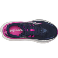 - Corte: Upper completamente revisado de malla técnica sin costuras y muy transpirable que asegura óptima funcionalidad. Diseño creado para un ajuste dinámico que se adapta a la forma de cada pie. Lengüeta y collar con espuma acolchada que proporciona un buen soporte para fijar con suavidad el pie durante la carrera. Bandas de soporte termosellado en los laterales que ayudan a la estabilización y sujección. Tirador trasero.