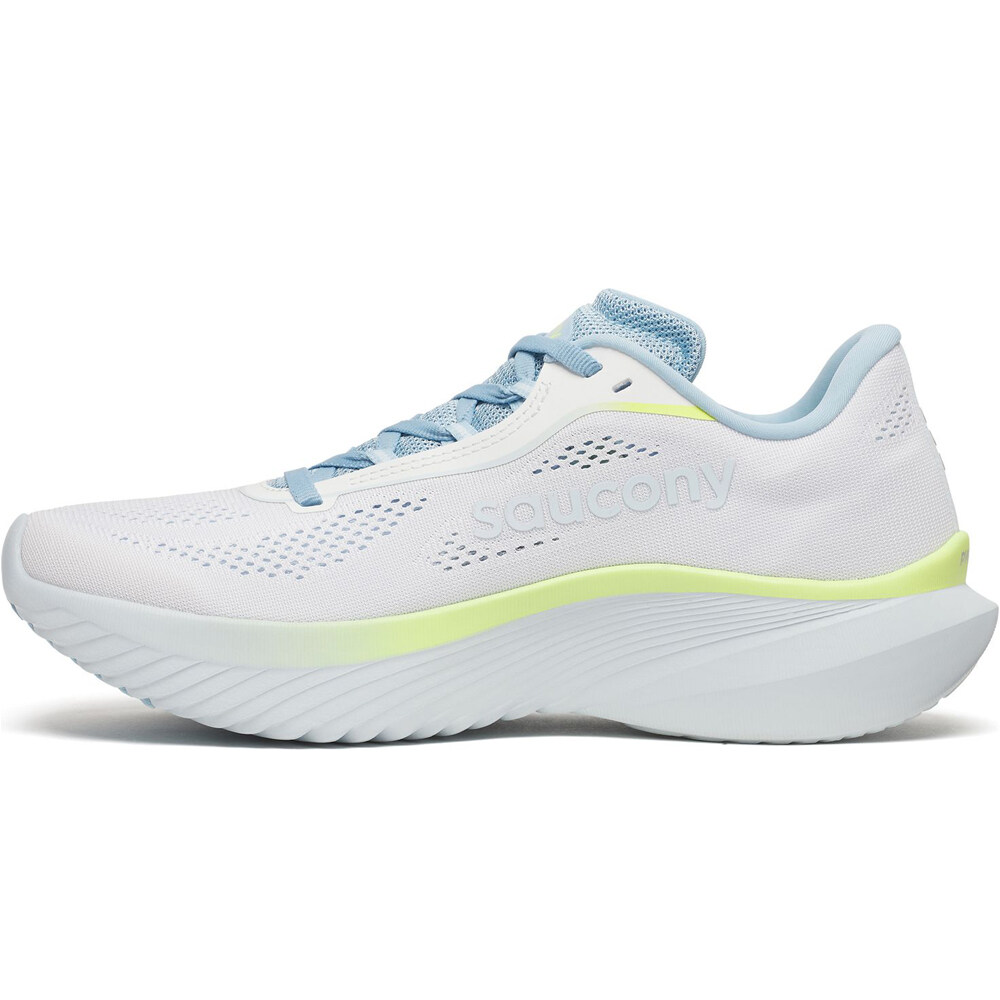 - La zapatilla Saucony KINVARA 15 incluye PWRRUN en toda la mediasuela para una amortiguación más reactiva, elástica y ligera. Esta nueva versión aporta mayor estabilidad y respuesta, algo que te ayudará a sacar el máximo rendimiento en tus entrenamientos y mejorar tiempos de cara a la competición.