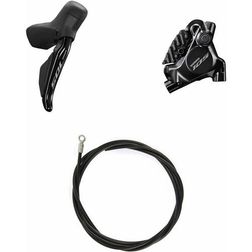 - El Shimano 105 ST-R7120 + BR-R7170 Disc Brake Set Hidráulico/2x12 Velocidades - Izquierdo/Delantero tiene las siguientes características: Compatibilidad: Diseñado para bicicletas de carretera de alto rendimiento. Montaje: Flat mount para una integración limpia y aerodinámica. Longitud de la manguera: 1700 mm para el freno trasero. Ajuste de alcance: Permite personalizar la distancia de la palanca para un ajuste perfecto. Tecnología de frenado: Mayor distancia entre las pastillas para reducir el ruido y mejorar la modulación. Durabilidad: Construcción robusta que soporta condiciones adversas y uso intensivo. Peso: Ligero y optimizado para rendimiento en carretera.