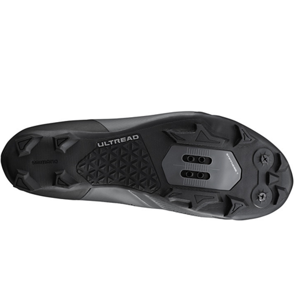 - Suela: Suela exterior de goma ultraligera Shimano ULTREAD XC de agarre. Placa de nailon reforzado con fibra de vidrio ligero para una mejorada transferencia de potencia y energia. La entresuela de altura de perfil bajo estabiliza el pie y maximiza la eficiencia de transferencia de fuerza. Nivel de rigidez 7. Compatibles con el sistema de cala SPD. Peso: 300 gr.(aprox.)