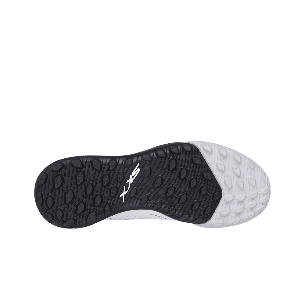 - La suela de la bota Skechers SKX 1.5 Jr Youth TF lleva goma con multitacos de tracción y aceleración, concebida especialmente para controlar y estabilizar su juego sobre superficies de moqueta y césped artificial.