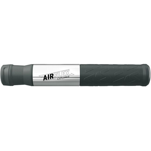 - Mini hinchador SKS Airflex Explorer con una manguera almacenada en el tubo de la bomba con tapa anti polvo, se fija al cabezal de la válvula con una conexión hermética de válvulas AV/SV, proporciona inflado de hasta 5 bar / 73 PSI.