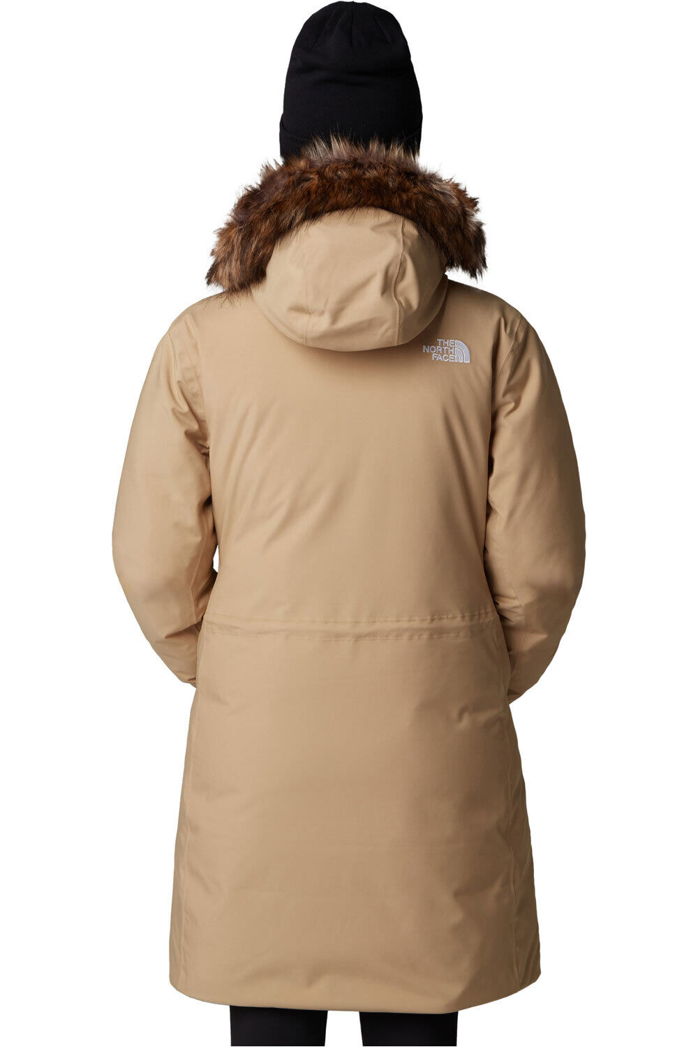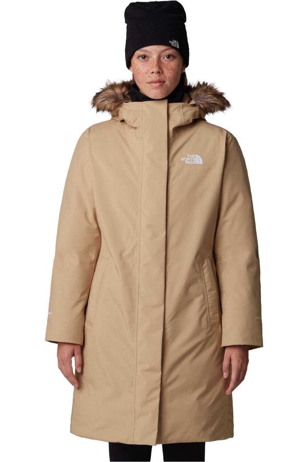 - Parka impermeable mujer Arctic: estilo urbano, calidez y protección total. La parka Arctic para mujer es una de las chaquetas impermeables más populares gracias a su equilibrio perfecto entre estilo, funcionalidad y confort térmico. Diseñada para ofrecer una protección completa frente a las condiciones climáticas adversas, es ideal tanto para el uso urbano como para paseos al aire libre. Esta chaqueta impermeable de invierno para mujer está confeccionada con tejido DryVent™ de dos capas, impermeable, transpirable y con costuras selladas, que mantiene el cuerpo seco incluso bajo lluvia o nieve. Además, su acabado hidrófugo duradero (DWR) mejora la protección frente a la humedad. El aislamiento térmico se compone de plumón reciclado de ave acuática de 600 cuins, que proporciona una excelente retención del calor sin añadir peso, garantizando ligereza y comodidad en climas fríos. Incluye una capucha integrada completamente ajustable, con ribete de pelo sintético desmontable mediante cremallera, ideal para adaptar el look y la protección según el entorno. El diseño también cuenta con puños elásticos con orificio para el pulgar, cordón de ajuste en la cintura y cierre frontal con cremallera VISLON™ oculta por solapa con botones a presión para un aislamiento óptimo. Los bolsillos tipo ojal con cremallera de seguridad permiten llevar tus objetos esenciales bien protegidos. El diseño se completa con el logotipo bordado en el pecho y la parte trasera del hombro, manteniendo un estilo urbano limpio y funcional.