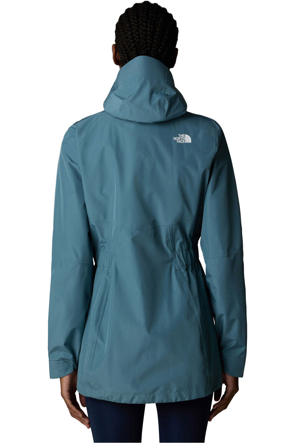 - Otras Caracteristicas: Chaqueta de corte largo impermeable con membrana DryVent. Capucha fija y ajustable. Cintura perfilada. Logotipo The North Face reflectante en el pecho y en la espalda.