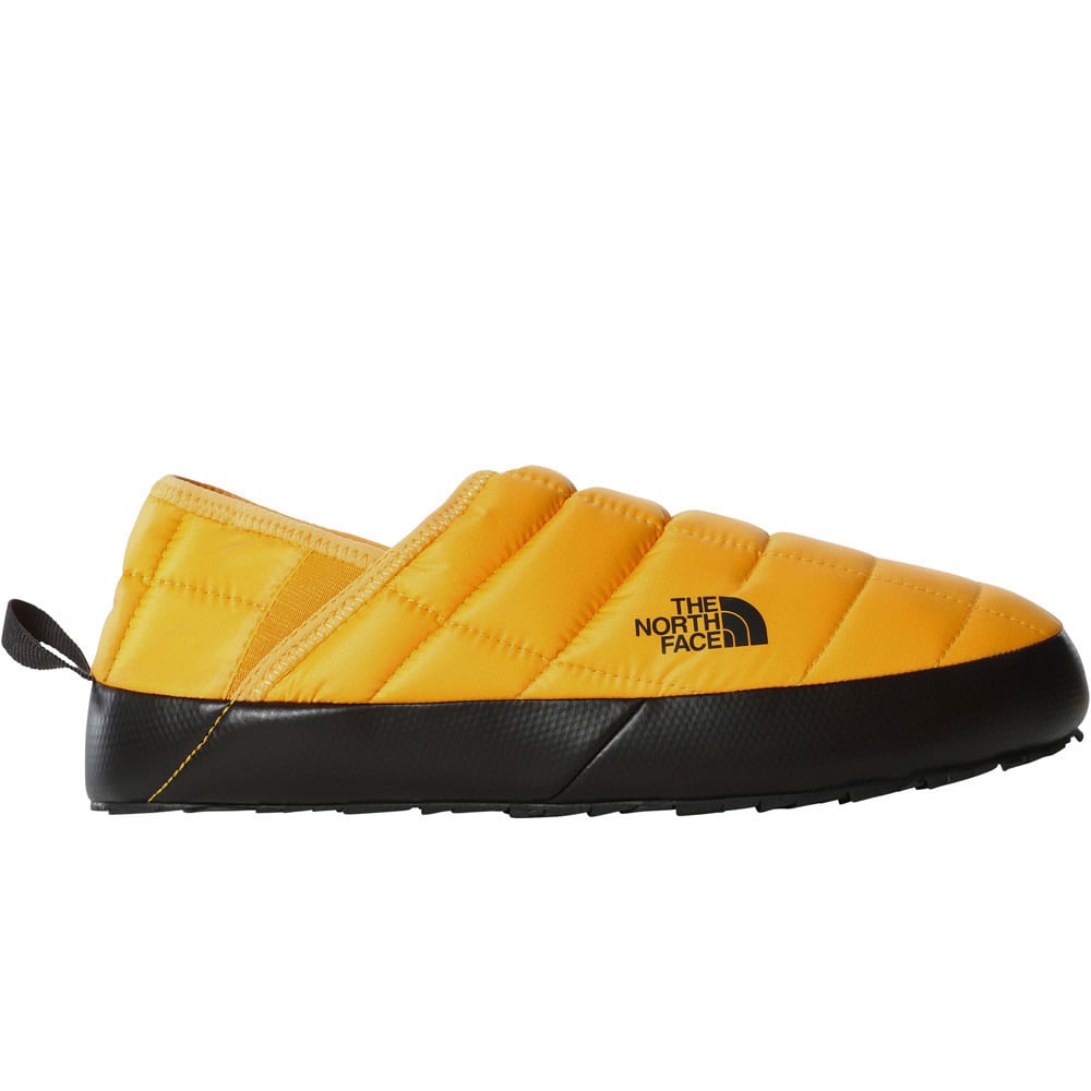 - Las zapatillas de hombre The North Face ThermoBall Traction Mule V son unas cálidas zapatillas de casa, adaptadas para la nieve; ya sea para andar por la nieve cuando vayas a por el periódico matinal o para pasar un rato de relax junto a la hoguera después de una larga jornada en las montañas. Gracias al aislamiento térmico ThermoBall Eco, concebido para condiciones bajo cero, y al suave forro de felpa, tus pies irán abrigados y cómodos para que tú disfrutes de tu momento de relax. Cuando sea la hora de irse a la cama, la suela exterior de goma antideslizante y el material antidesgarros de alta resistencia se ocuparán de la nieve.