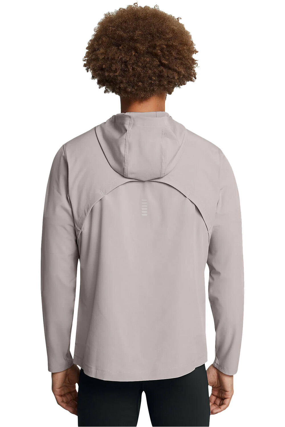 - La chaqueta impermeable Under Armour UA OutRun The Storm tiene resistencia al agua e incorpora tejido ligero y duradero, aberturas en la espalda para mejorar la ventilación, y detalles reflectantes que aumentan la visibilidad en condiciones de poca luz. Destacar, que incluye bolsillos laterales con cremallera y un bolsillo interior para dispositivos multimedia.