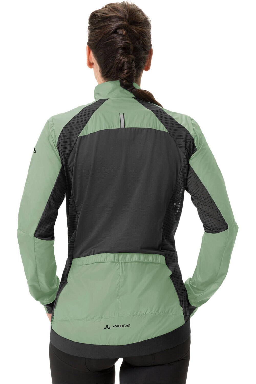 - El cortavientos de mujer para ciclismo Vaude Furka Air incorpora elementos reflectantes para mejorar la visibilidad en condiciones de poca luz, y dos bolsillos traseros abiertos para un almacenamiento práctico. Su etiqueta Green Shape de VAUDE asegura que está hecha con materiales sostenibles y bajo condiciones laborales justas.