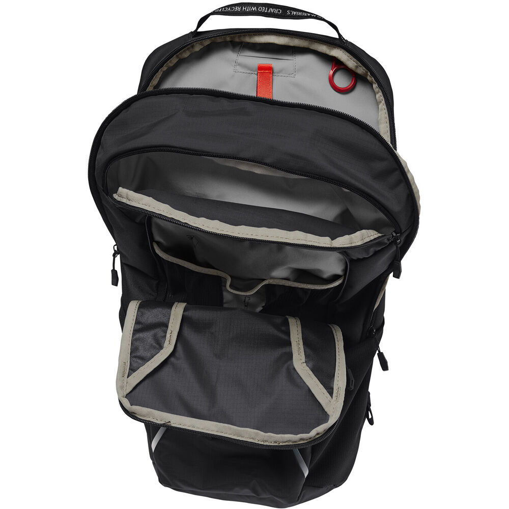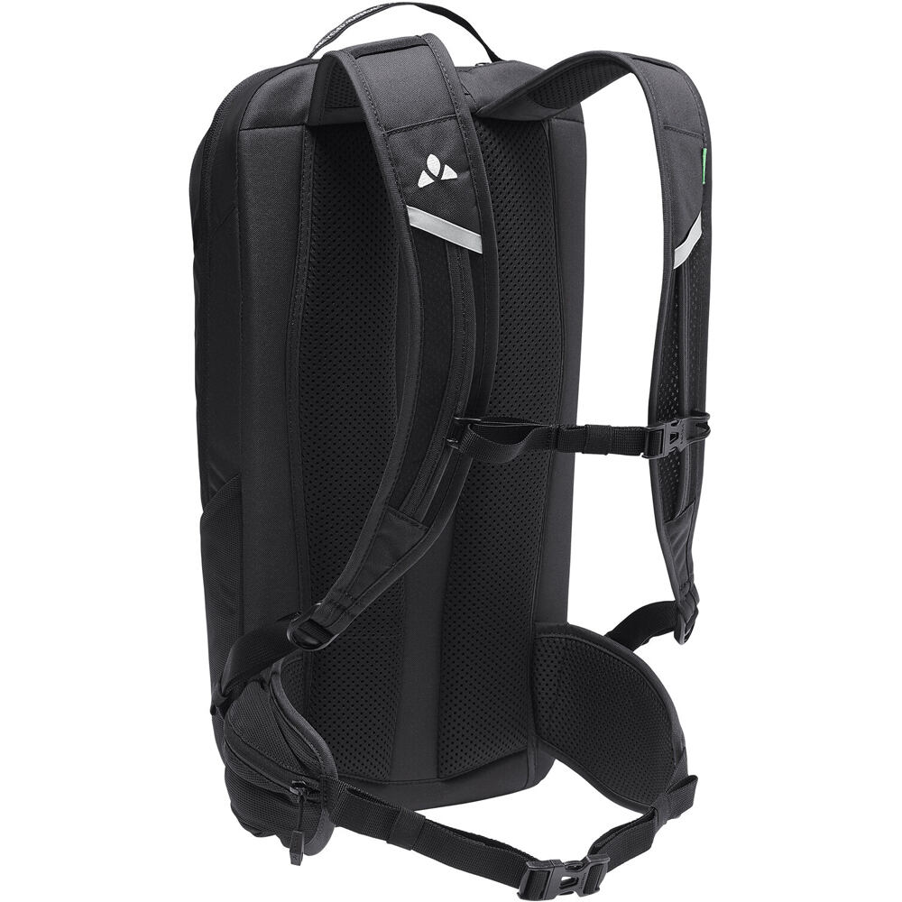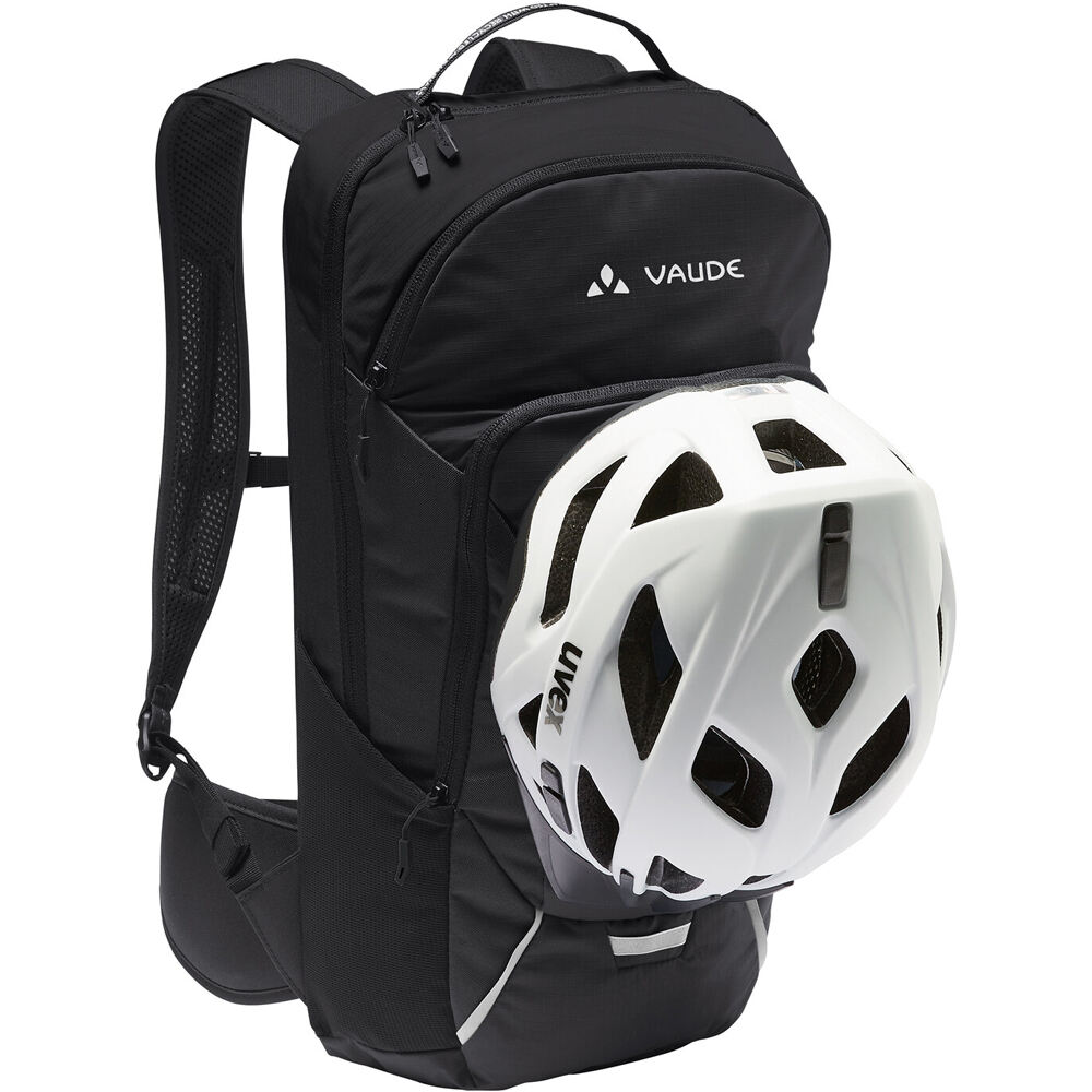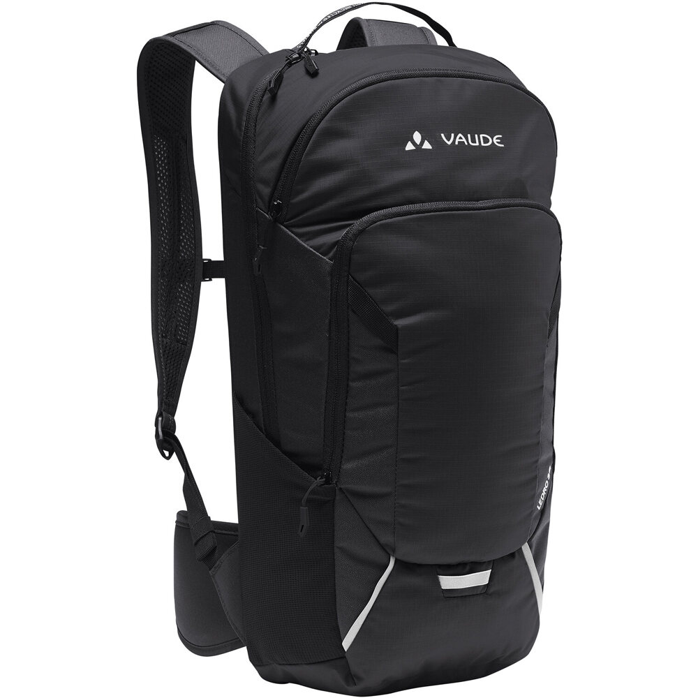 - Fabricada con materiales reciclados y con acabado Eco Finish libre de PFC, la mochila Vaude Ledro 12 viene equipada con múltiples compartimentos, como un bolsillo frontal con organizador, compartimento para herramientas, bolsillos laterales de malla y un soporte para casco.