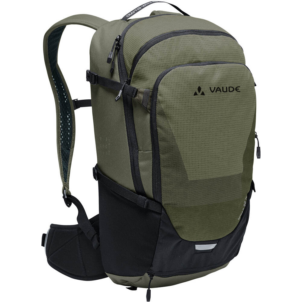 - Con la mochila Vaude Moab 20 II podrás disfrutar, llevando tus pertenencias con comodidad, mientras pedaleas en tu bici. Incorpora un cinturón lumbar ancho y transpirable con función de compresión, que incluye un bolsillo con cremallera, para llevar tu teléfono móvil.