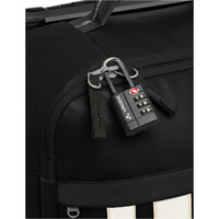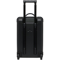 - Otras Caracteristicas: Interior: Fondo intermedio de malla con cremallera. Correas de embalaje. Exterior: Franjas reflectantes. Daisy chain para accesorios. Mango telescópico extensible. Ruedas de goma silenciosas. Asas acolchadas en los laterales corto y largo. Base rígida + parte superior textil. Funda atornillada a la carcasa para mejor reparabilidad. Estructura desmontable y plegable (reduce altura en 20 cm). Componentes reemplazables: ruedas, cremalleras, base, protección de bordes. Cierre compatible con candado TSA. Certificaciones: Green Shape, Grüner Knopf.