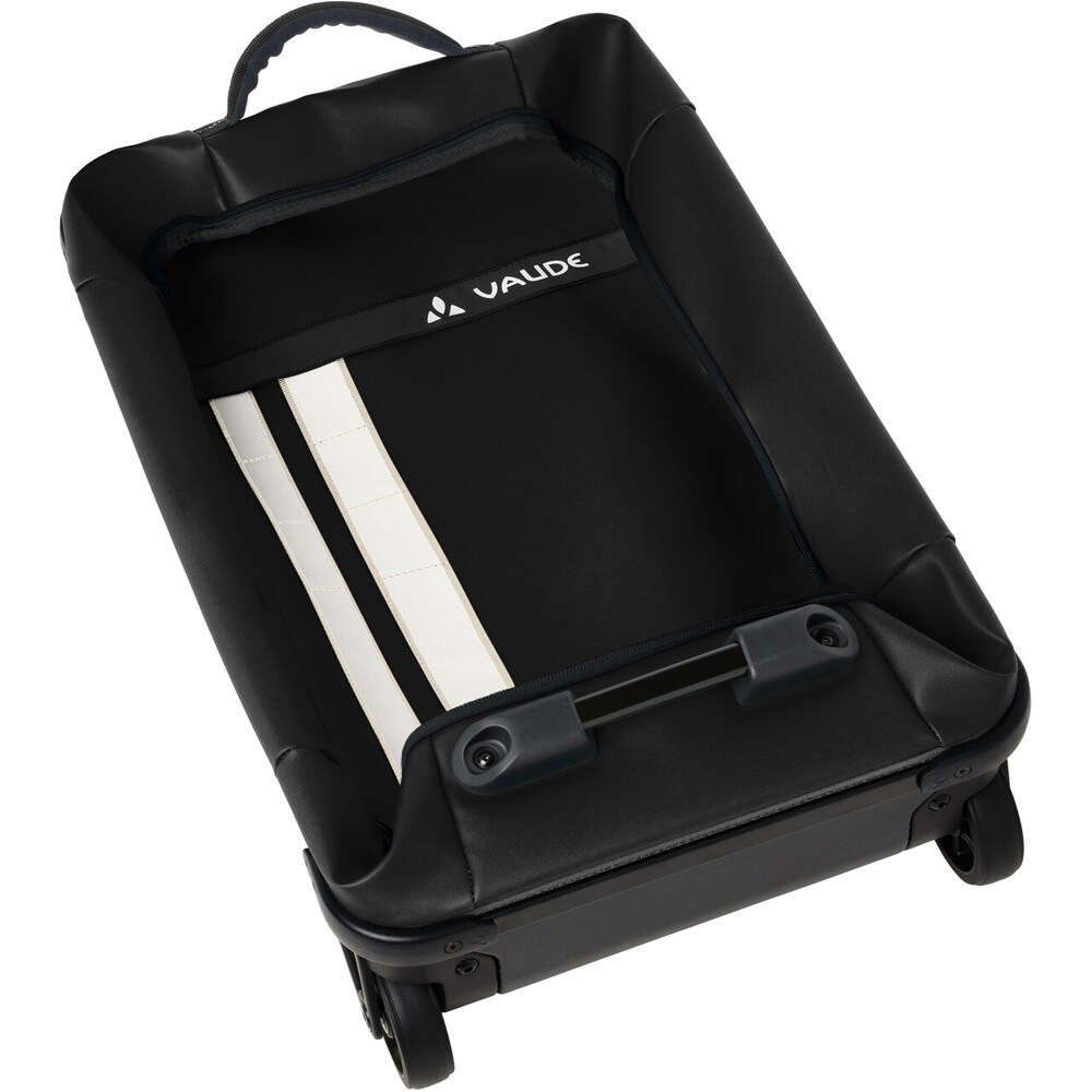 - La maleta Vaude Takutea 35 es perfecta para realizar viajes cortos de fin de semana. Mezcla una base rígida con una parte superior textil fabricada en poliéster reciclado, libre de PVC, lo que la convierte en una opción ecológica, resistente y ligera. Debido a su estructura desmontable, puede plegarse para ahorrar hasta 20 cm de altura, facilitando su almacenamiento en espacios reducidos.